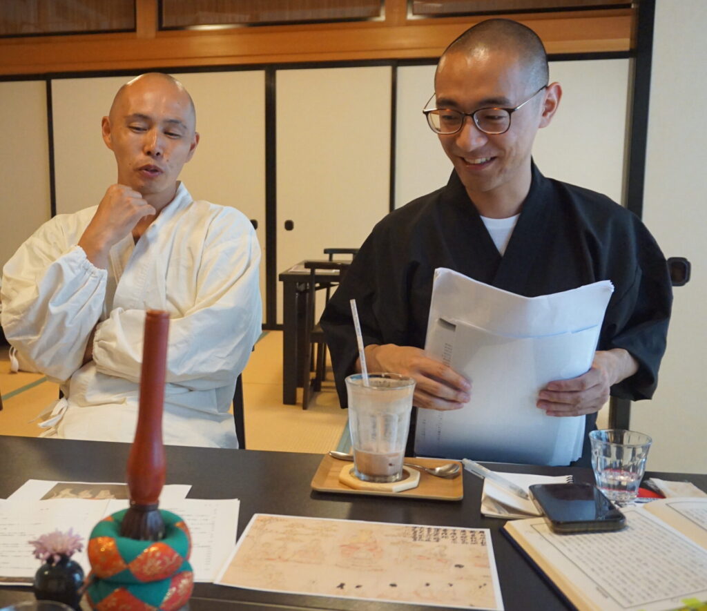 普賢寺の住職を務めるのは、天台宗の総本山・比叡山で回峰行初百日を満行された、ここよりファミリーでもある小野常寛(おの・じょうかん)さん。今回は、同じく天台宗の僧侶であり、大学院で普賢菩薩について学んでいる都筑玄祥(つづき・げんしょう)さんをゲストにお迎えし、お二人にたっぷりと語っていただきました。仏さまとのご縁がじわじわと繋がっていくお話を、数回に分けてお届けいたします!
