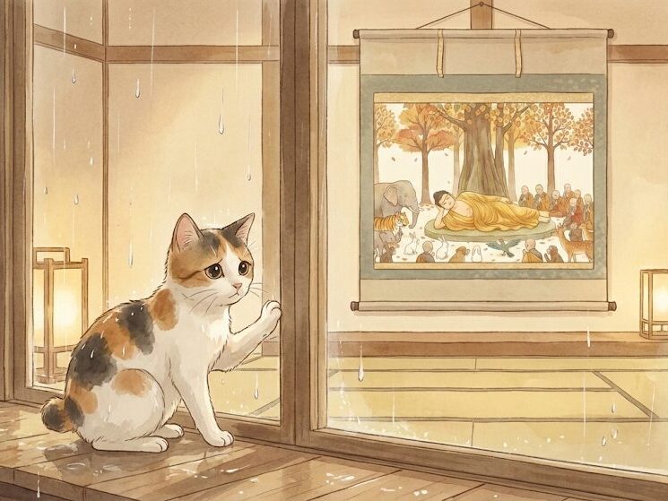 (※中には、珍しく猫が描かれている「涅槃図」を持つお寺もあります。探してみると面白いですよ!)