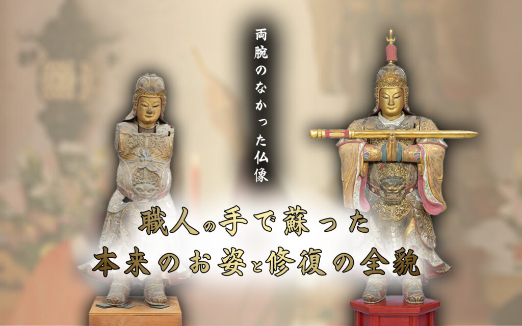 内部構造や彩色層への科学的アプローチにより、造像当時の高度な技術が解き明かされました 。剥落していた彩色は、膠(にかわ)を用いた伝統的な技法で丁寧に剥落止めが施され 、失われた両腕や宝剣は、萬福寺での実地調査と緻密な試作を経て、往時の姿へと復元されました 。